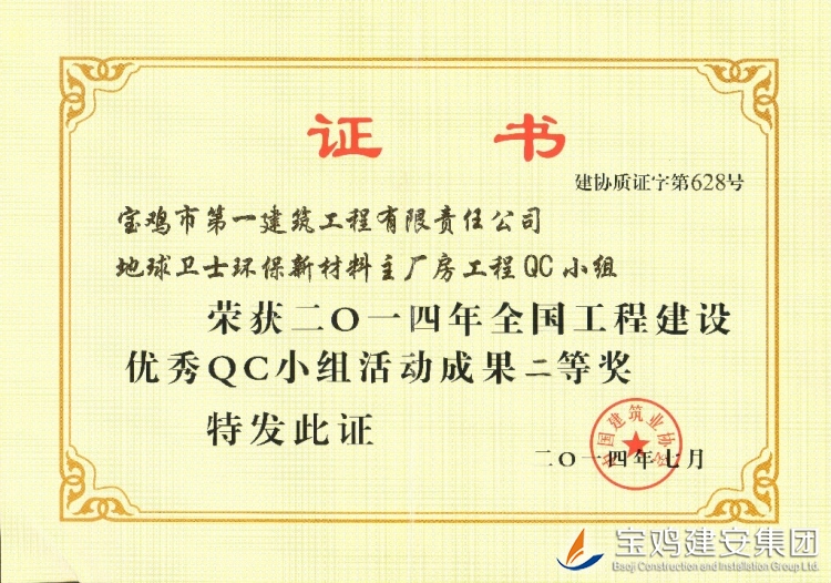 Second Prize of QC Team of Main Plant Engineering of Environmental Protective New Materials