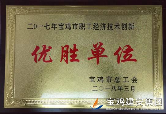 公司榮獲寶雞市職工經(jīng)濟技術(shù)創(chuàng)新優(yōu)勝單位