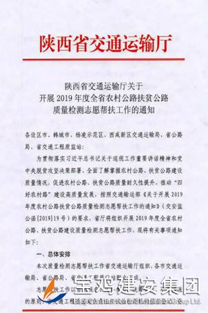 今年8月底,陜西省交通廳下發(fā)《關于開展2019年度全省農(nóng)村公路扶貧公路質(zhì)量檢測志愿幫扶工作的通知》,通知轄區(qū)內(nèi)試驗檢測機構自愿報名參加扶貧公路義務檢測活動,對自愿報名并且通過資格能力審核的檢測單位隨機抽取各市的待檢縣,實施幫扶檢測活動,并要求于10月中旬完成檢測數(shù)據(jù)匯總表和分析報告上報工作。