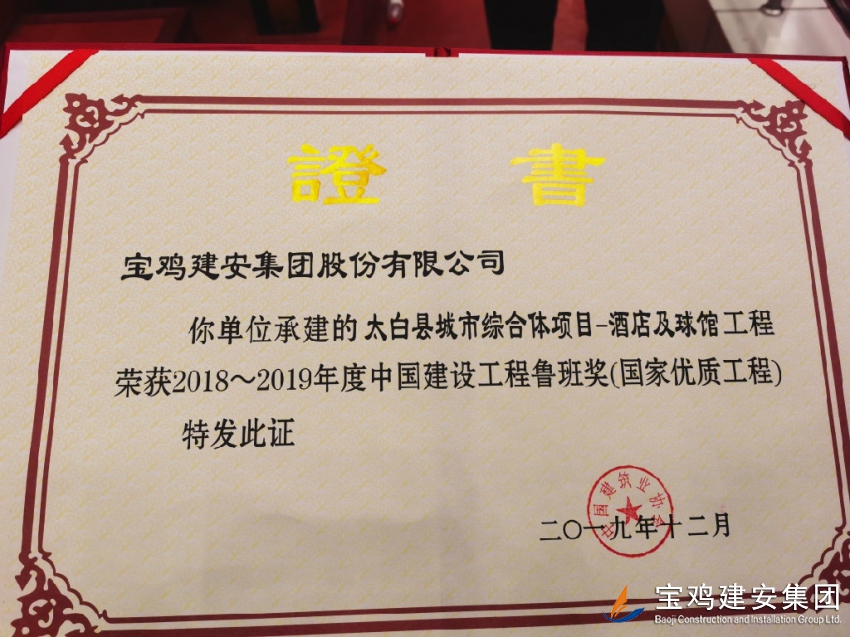 睽違三十載,喜開二度梅。12月10日,從北京會議中心傳來喜訊,由寶雞建安集團(tuán)承建的太白縣城市綜合體項(xiàng)目—酒店及球館工程,在全國建筑行業(yè)精品工程最高獎項(xiàng)大比拼的激烈角逐中,力挫群雄,脫穎而出,最終摘得2018--2019年度中國建設(shè)工程魯班獎(國家優(yōu)質(zhì)工程)桂冠,這也使寶雞建安集團(tuán)成為繼法門寺重建工程獲得寶雞第一個建筑魯班獎后,時隔近30年再次奪得“魯班獎”的企業(yè),從而書寫了建筑行業(yè)頂級獎“梅開二度”的傳奇!