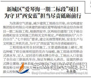 為改善空氣質(zhì)量,減少建筑工地?fù)P塵污染,由寶雞建安集團(tuán)股份有限公司承建的新城區(qū)愛琴海城市商業(yè)綜合體項(xiàng)目一期二標(biāo)段工程,根據(jù)西安市、區(qū)兩級(jí)住建部門關(guān)于揚(yáng)塵治理和安全文明施工的相關(guān)文件規(guī)定,嚴(yán)格按照?qǐng)?zhí)行“六個(gè)百分百”、“七個(gè)到位”要求,建立長效管理機(jī)制,安全生產(chǎn)與文明施工齊抓共進(jìn),為守衛(wèi)“西安藍(lán)”擔(dān)當(dāng)盡責(zé)砥礪前行。