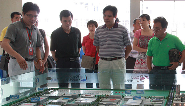 劉慶強(qiáng)局長(zhǎng)一行在展廳聽(tīng)取了園區(qū)發(fā)展情況的介紹,并參觀了長(zhǎng)城能源及國(guó)鈺電子生產(chǎn)車(chē)間,詳細(xì)了解了企業(yè)生產(chǎn)工藝和市場(chǎng)開(kāi)拓等情況。在北部灣電子信息科技企業(yè)孵化器,劉局長(zhǎng)一行饒有興致地參觀了孵化器企業(yè)展品,并與企業(yè)的員工親切交談,了解企業(yè)在孵化器的發(fā)展情況。劉局長(zhǎng)表示中電北海產(chǎn)業(yè)園、北海市科技局共同打造孵化器,所取得的先進(jìn)經(jīng)驗(yàn)值得學(xué)習(xí)研究,兩市的科技部門(mén)要加強(qiáng)溝通,互相借鑒提高。