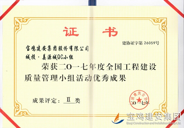 城投 姜源城QC小組 優(yōu)秀成果