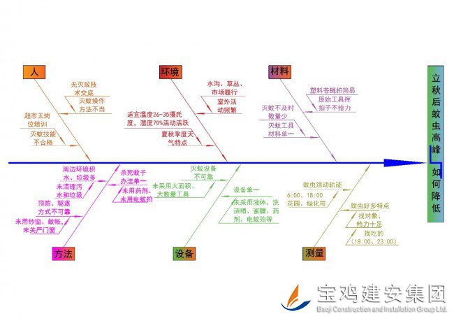 上海大潤(rùn)發(fā)超市的一位清管員浦賽紅,干了一件有點(diǎn)雞毛蒜皮但也算不上驚天動(dòng)地的大事!滅蚊整整13年,研究出一套“蚊子兵書”,一年不同季節(jié),一天不同時(shí)間段,蚊子的生活習(xí)性、活動(dòng)范圍、滅殺招數(shù),掌握得明明白白,有她在的店,夏天光腿進(jìn)去站上半小時(shí),都沒有一只蚊子來叮咬。為此,我們對(duì)這篇讓1.8億人贊嘆的報(bào)道做了深入研讀,利用“頭腦風(fēng)暴法”,集體展開討論,充分發(fā)揚(yáng)民主,各抒己見,集思廣益,全面分析,每個(gè)人發(fā)表觀點(diǎn)與感想,我們都大受震撼。卻發(fā)現(xiàn)了一個(gè)不爭(zhēng)的事實(shí)!掌握和運(yùn)用行之有效的統(tǒng)計(jì)方法,提高工作效率。這位清管員其實(shí)在不經(jīng)意間運(yùn)用了一種科學(xué)的統(tǒng)計(jì)方法:因果圖法!見下圖: