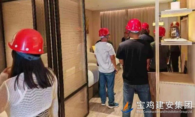 來訪人員首先闡明了此行的目的和意義,我單位相關(guān)管理人員針對隴縣海棠酒店項目特征、在建情況、建成后主要建筑功能,向各位嘉賓進行了詳細介紹。隨后在安裝一公司現(xiàn)場管理人員陪同下,對隴縣海棠酒店已成型樣板間,廚房、大堂及地下車庫等工程重點建設(shè)部位進行實地參觀考察。我公司管理人員對西建集團、陜西省建筑設(shè)計院同仁提出的專業(yè)問題給予了耐心解答,在輕松友好的氣氛中,嘉賓對我公司施工項目質(zhì)量及企業(yè)綜合實力表達了高度認可與肯定。