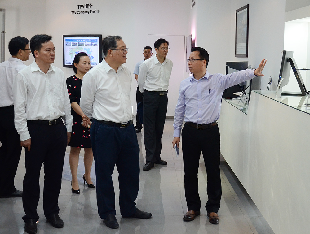 在中國電子北海產(chǎn)業(yè)園展示廳,北海工業(yè)園區(qū)管委會主任楊楨向陳剛副主席介紹了以中國電子北海產(chǎn)業(yè)園為基礎(chǔ)核心的北海電子信息產(chǎn)業(yè)發(fā)展情況,園區(qū)電子制造業(yè)板塊,重點龍頭企業(yè)發(fā)展概況。當陳剛副主席得知2017年1—2月,中國電子北海產(chǎn)業(yè)園實現(xiàn)產(chǎn)值81.3億元,同比增長6%;上繳稅收6844萬元(其中新增服務(wù)業(yè)稅收3150萬元),同比增長523%;陳剛副主席贊揚了中國電子入駐廣西,引領(lǐng)帶動了電子信息產(chǎn)業(yè)的跨越式發(fā)展,為提升、優(yōu)化地方產(chǎn)業(yè)結(jié)構(gòu)做了重要的貢獻。陳剛副主席一行參觀調(diào)研了廣西電子信息產(chǎn)品質(zhì)檢中心,冠捷科技顯示器生產(chǎn)線,六禾電子SMT生產(chǎn)線。