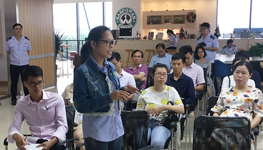 企業(yè)人員認(rèn)真聽(tīng)講,主動(dòng)咨詢(xún)業(yè)務(wù)問(wèn)題